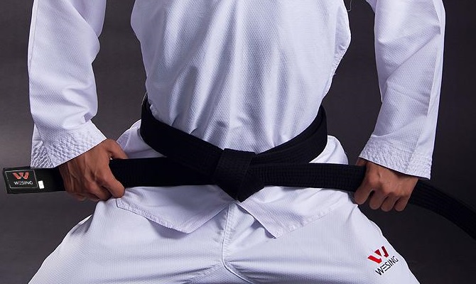 Amarrando a faixa em torno da cintura, as duas extremidades encontram-se, após duas voltas, no centro do estômago, chamado Danjeon. Então a faixa forma um triângulo para terminar com o nó. A forma do triângulo denota a unidade de uma pessoa. O sentido deste procedimento cerimonial é coletar e dispersar a energia dentro do corpo, no Danjeon, de modo que os praticantes possam utilizar o ki na aplicação das técnicas. Tradicionalmente, Dojang significa o lugar de despertar. Isso é praticando a coleta e dispersar a energia livremente com as técnicas, desenvolvendo a energia interna para criar a harmonia e a ordem, chegando ao despertar pessoal, e atingir finalmente o esclarecimento (a iluminação), a grande união com o “eu”.